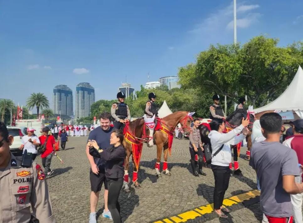 Di tengah keramaian dan semangat nasionalisme yang membuncah, kehadiran pasukan berkuda Turangga Polri menjadi daya tarik tersendiri bagi masyarakat. Tidak hanya menjalankan fungsi pengamanan, pasukan berkuda juga menciptakan suasana yang lebih humanis dan bersahabat di tengah perayaan nasional tersebut.