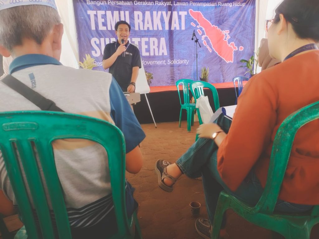 Koordinator acara menegaskan, temu rakyat ini mengusung tema “Bangun Persatuan Gerakan Rakyat Lawan Perampasan Ruang Hidup.”