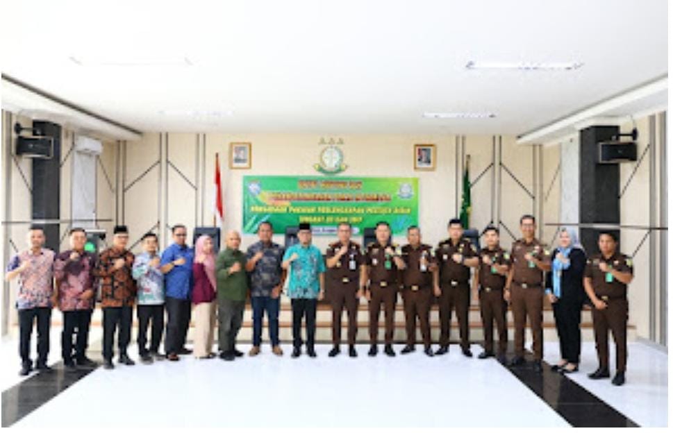 Kegiatan ini dirangkaikan dengan penandatanganan Pakta Integritas oleh seluruh pihak terkait, berlangsung di Aula Kejari OKU, Kamis (11/9/2025).