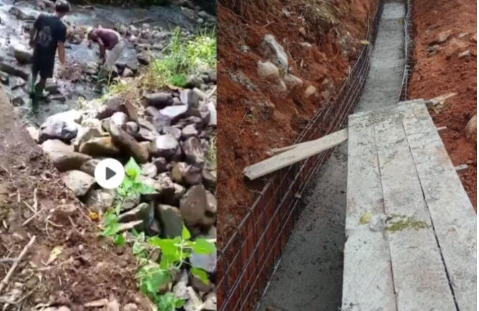 Awak media mencoba mengali informasi lebih dalam lagi, terkait proses pekerjaan proyek tersebut. Mengejutkan video yang berdurasi 36 detik, Terlihat sejumlah pekerja mengambil material batu kali dilokasi yang diduga kuat untuk digunakan sebagai meterial proyek.Dan yang lebih mengejutkan lagi, dari rekaman suara kepala tukang menyatakan bahwa pekerjaan tersebut memang ada yang dikurangi mulai dari timbunan dan proses pembesian.