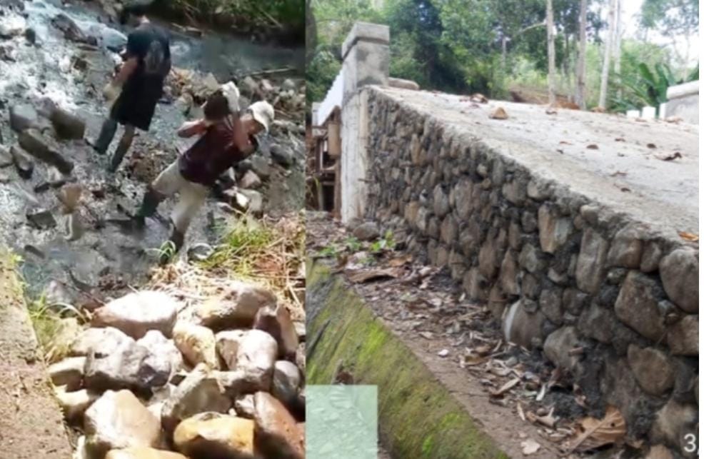 Awak media mencoba mengali informasi lebih dalam lagi, terkait proses pekerjaan proyek tersebut. Mengejutkan video yang berdurasi 36 detik, Terlihat sejumlah pekerja mengambil material batu kali dilokasi yang diduga kuat untuk digunakan sebagai meterial proyek.Dan yang lebih mengejutkan lagi, dari rekaman suara kepala tukang menyatakan bahwa pekerjaan tersebut memang ada yang dikurangi mulai dari timbunan dan proses pembesian.