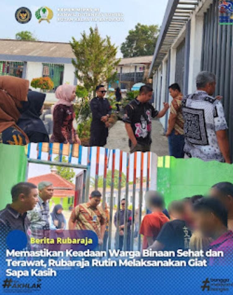 Kabar Rakyat Nasional.id, Baturaja Humas Rubaraja Rutan Kelas IIB Baturaja terus menunjukkan kepeduliannya terhadap kondisi warga binaan dengan rutin melaksanakan kegiatan Sapa Kasih. Melalui kegiatan ini, petugas secara langsung menyapa, mendengarkan keluhan, sekaligus memastikan kesehatan serta kebersihan lingkungan hunian warga binaan, Jumat (26/9).