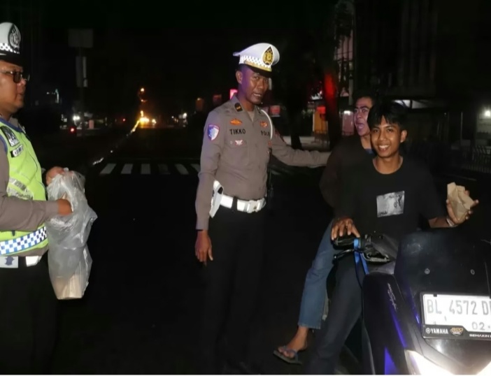 Tak sekadar berbagi makanan, para personel juga memanfaatkan momentum tersebut untuk mengingatkan masyarakat agar tetap menjaga keamanan dan ketertiban selama Ramadan. Pengendara diimbau tetap tertib berlalu lintas, menggunakan helm, serta berhati-hati berkendara meski jalanan relatif sepi pada dini hari.